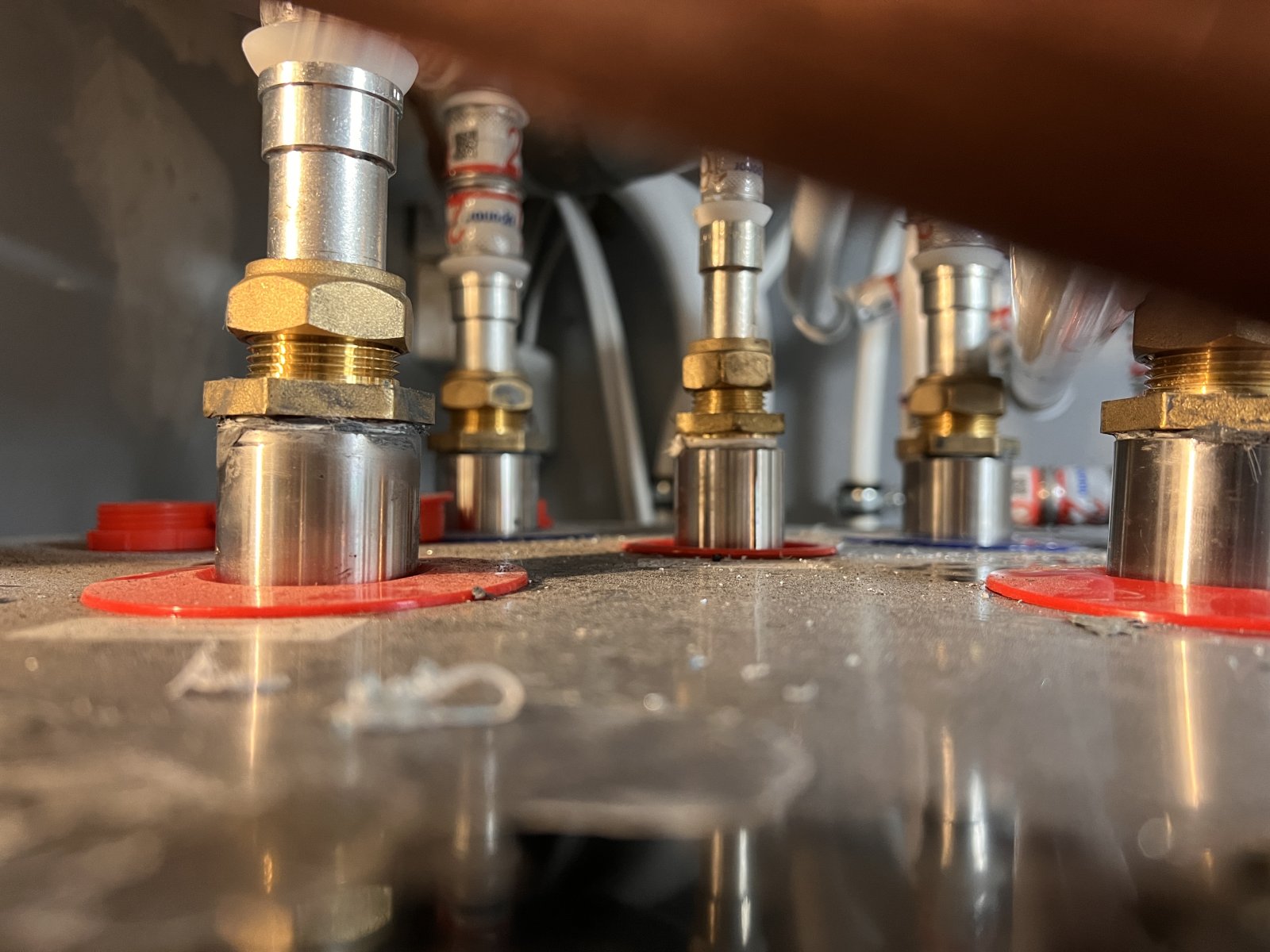 Huomioi kuitenkin että noissa letkun liittimissä on leveät tiivistepinnat ja DN25:ssa reikä on 19 mm ja DN32:ssa 25 mm. Itselle tuli tuumaset mustat putket ja DN32 letkut. Tiivisteet tuli letkujen mukana mutta minä laitoin kuparitiivisteet. Letkut tilasin Rejko verkkokaupasta.