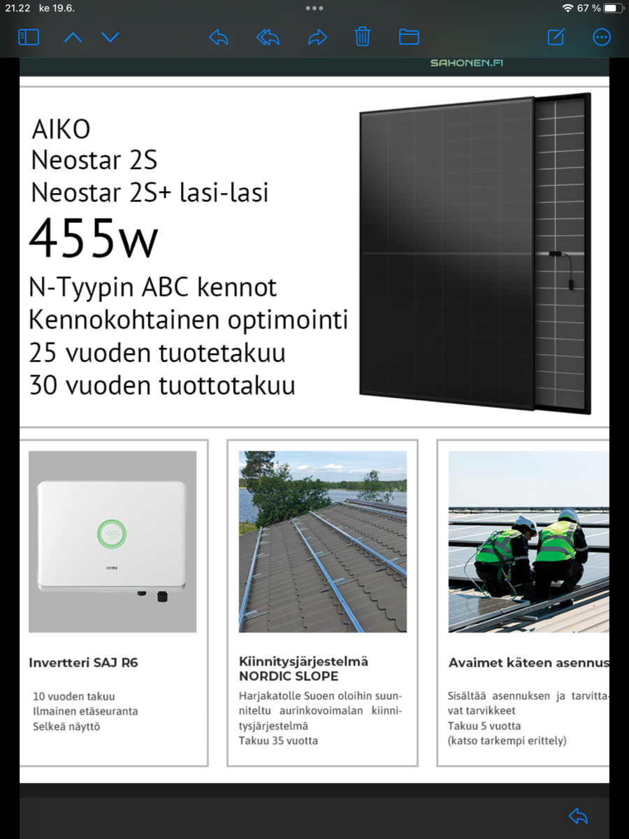 Mulla ei ole vielä mitään paneelia katsottuna, olen oman hankinnan jälkeen jäänyt kehityksestä jälkeen. Fyysisesti varmaan pienimmät mahdolliset harkittavana niin saisi tiiviiseen nippuun kun absoluuttisella wattipiikkimäärällä ei ole niin valtavan suurta merkitystä. Tässä kun asiaa kerkesin pohtimaan niin 2x3-rivisenähän noita saisi sen 6 kpl aika hyvin sijoitettua.