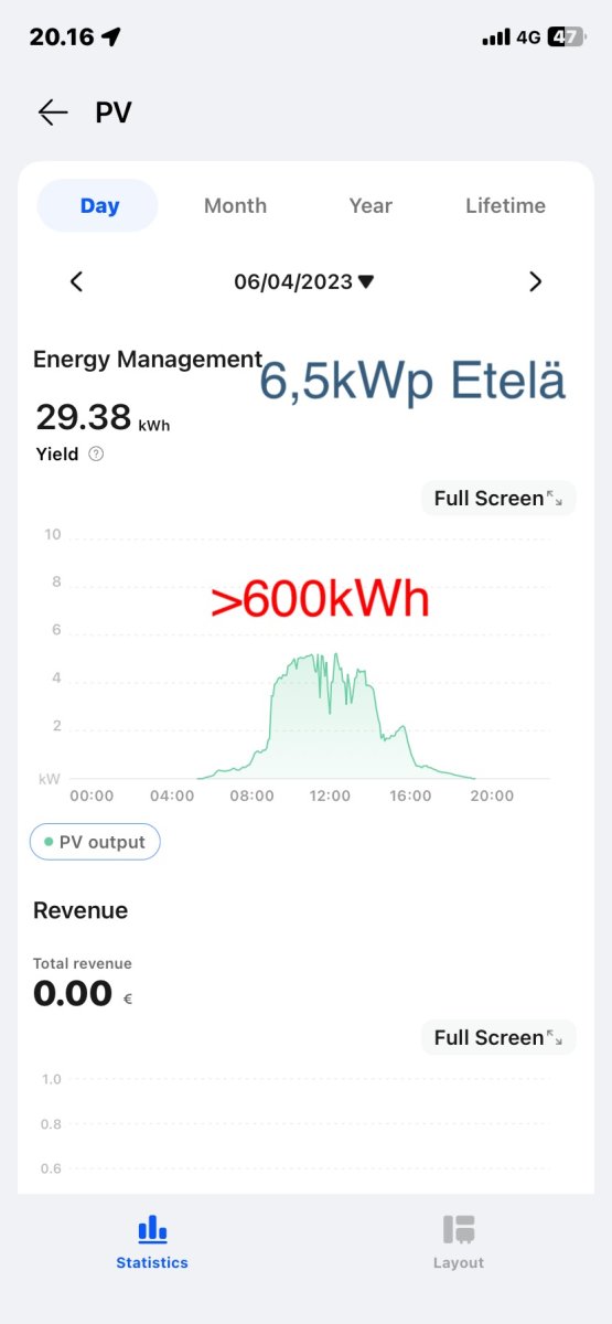 Perässä tullaan 551kWh.Ja vuodessa meni 600 tuotettua kWh:ta reippaasti rikki.