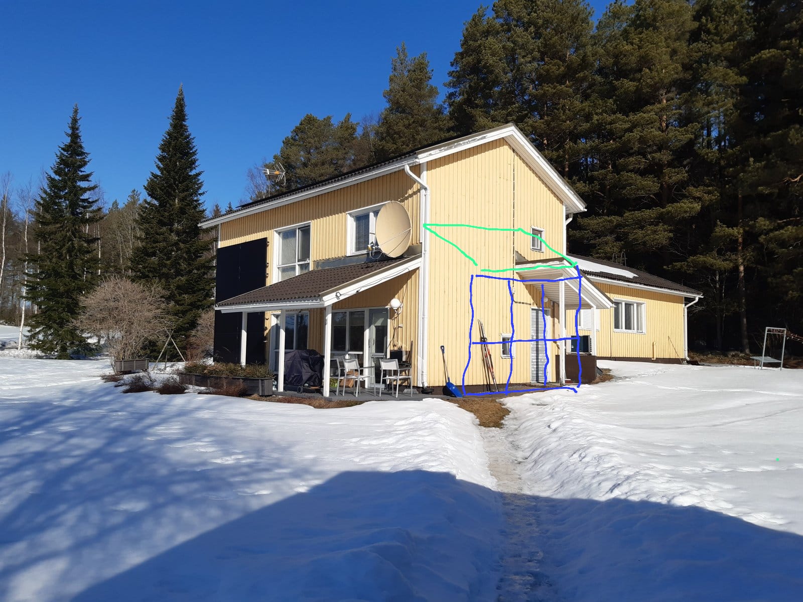 Kannatetaan! Purkaa ton pikkukatoksen pois ja tekee koko leveydeltä.Tee siihen aurinkopanelikuisti.![]()