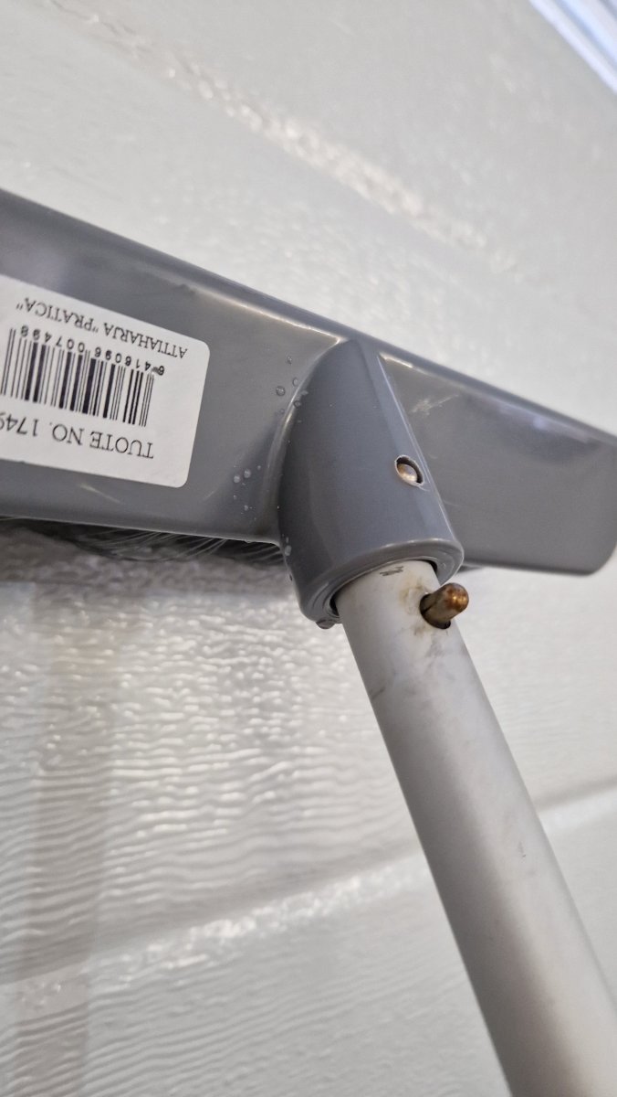 Muovinen lattiaharja muovipinnoitetulla metallivarrella. Pehmeät harjakset.www.puuilo.fi