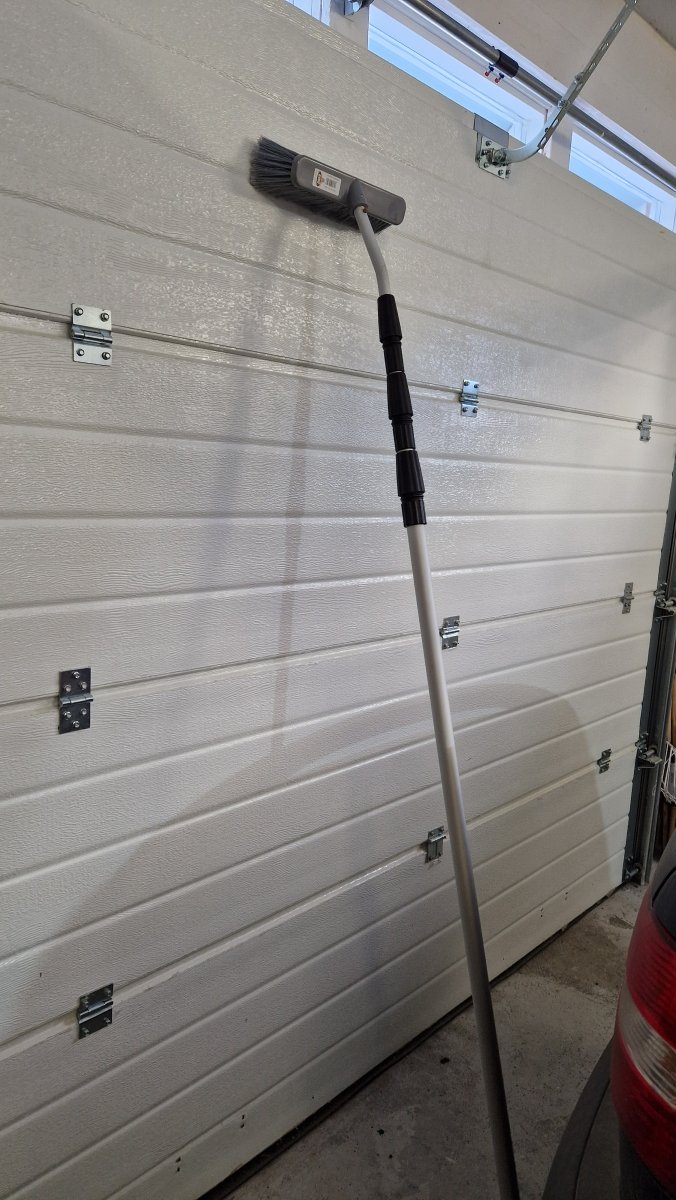 Silloin kun tuota lumikuormaa vähensin niin paneelien pintaan jäi jäinen kerros, eli välttämättä paneelin pintaa ei naarmuteta, riippuu tietysti työkaluista. Toiseksi jos ei puhdista ihan nuolemalla vaan jättää pienen kerroksen joka sitten sulaa auringon voimasta nopeasti pois. Luulisi, että katolle tulevien paneelien pintamateriaalien valinnassa myös tuota naarmuuntumista olisi ajateltu? Voihan sinne katolle lentää syksyllä lehti ja oksia jotka hautautuvat lumeen ja lumien pudottua oksat raapivat pintaa.Harjalla aika toivotonta yrittää kaapia lähes 20cm lumikerrosta pois, mutta kopioin kaupallista lumenpudotinta ja laitoin teleskooppivarren päähän semmoista taipuisaa muovilevyä mitä kerran toin töistä. Oli erään pakkauksen päällä suojana. Todella hyvin sai lumi vauhtia, kun sen työnsi lumen alle.