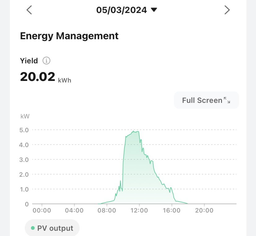 Vajaat 6kWh sai jo eilen tuotannosta, varmaan aika lailla päiväkohtainen maksimi kun taivas oli pilvetön. Pari korkeaa puuta varjostelee vielä tähän aikaan keväästä. Olipa kuitenkin eka päivä kun tuotantoa pääsi myyntiin asti.
