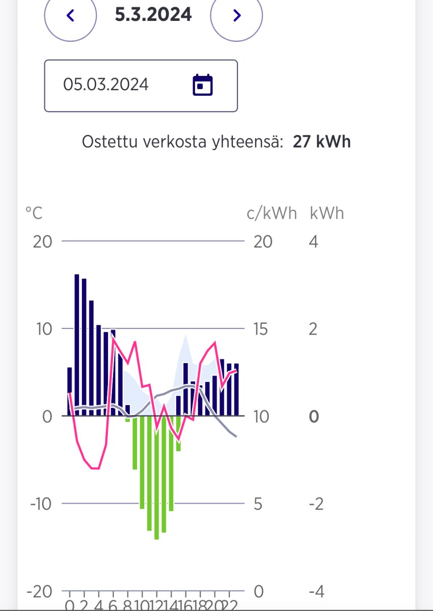 Aika parannus eilisen 24,4 kWh —> tänään 25,2 kWh ja käyrä kuitenkin yhtä hieno