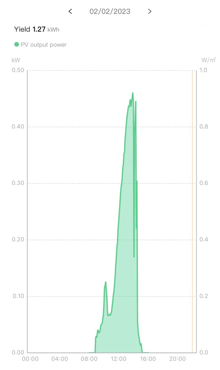 Ei paistanut kuin hetken puolen päivän aikaan ja sekin huonosti, sitten meni kokonaan pilveen. 3,2 kWh ehti tuottaa. Eiköhän noissa itävaltalaisissakin jotain Kiinasta tullutta ole mutta ainakin kuulosti paremmalta kuin kiinalaiset156W huiput tänään lumen alta.