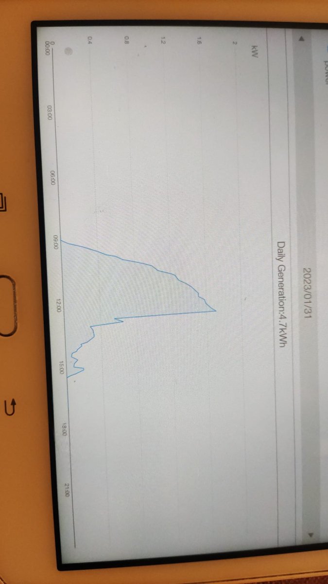Luonto tuonut lumet alas, itse en paneeleita puhdista. Monta hyvää kWh:ta on menetetty kun lumi oli paneeleiden päällä. Hyvä sijainti, lumeton kuukausi ja hyvät paneelit = yllättävän hyvä tuotto. Ainoa ongelma on, etten saa tuollaisia hienoja käppyröitä, siinä tuo Kostalin invertteri on pa..ka. Tai sitten on käyttäjässä vika, hyvin mahdollistaEi ole sitten lumi ollut haitolla paneelien päällä. En oikein meinaa käsittää noin suurta tuottoa tammikuussa ja jopa myyntiin.