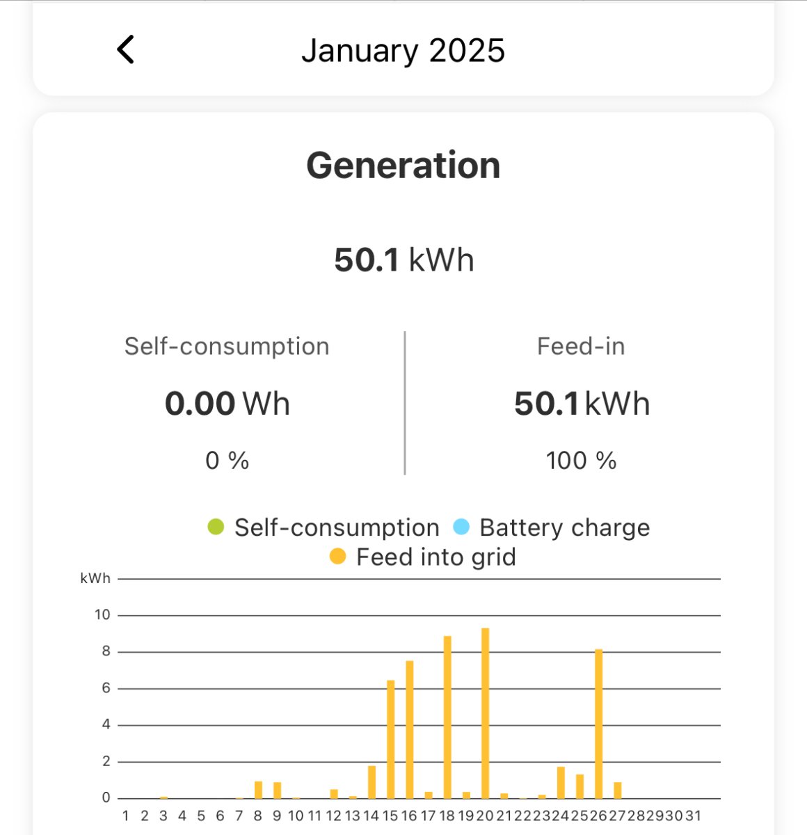 No eipä paljoa parantunut mut kaikki loppu meni omaan käyttöön. Oma uusi tammikuun️ennätys on nyt 51,8 kWh