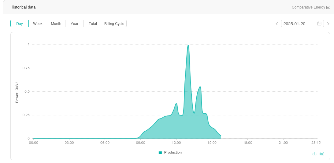 Niin voisi kuvitella mutta pitkänaikavälin data sanoo että energiatuotto on aika tasianen. Täytyy varuiksi kuvata paneelit mutta voi olla että koska valo tulee puiden läpi niin se vaikuttaa. Ja joo tämä on mikrojen etu, tai haittta. Että näkee.Jotain pielessä, jos tuo jatkuu noin?