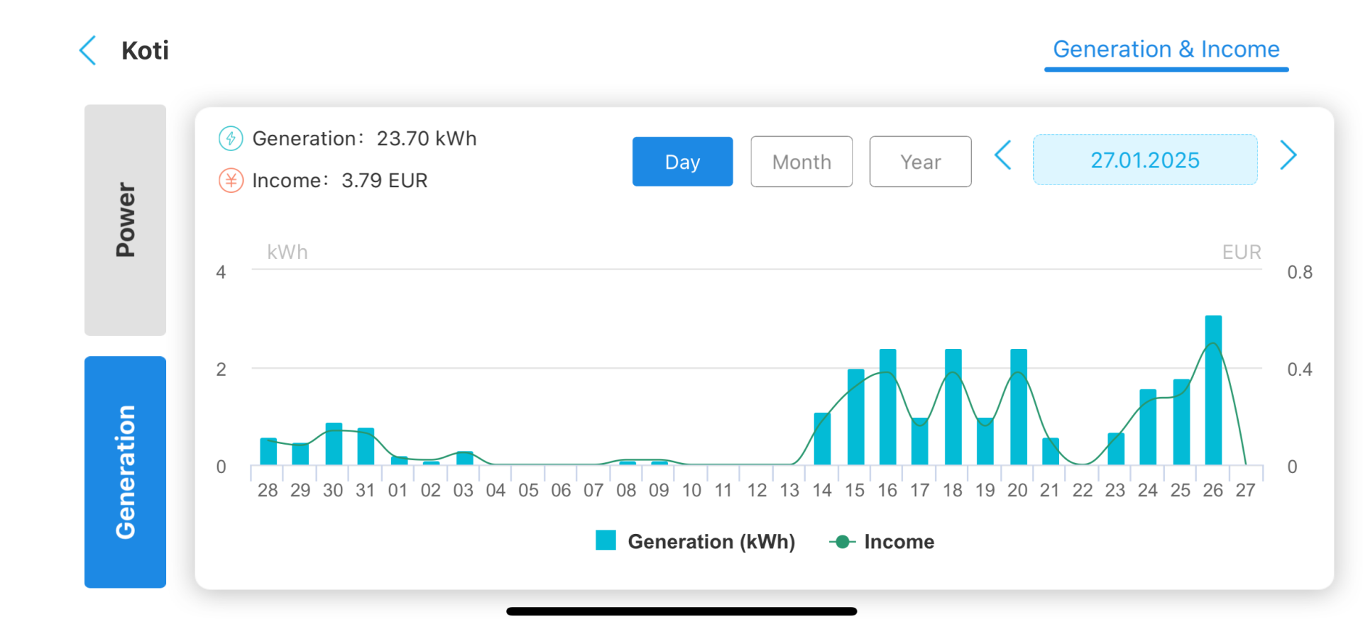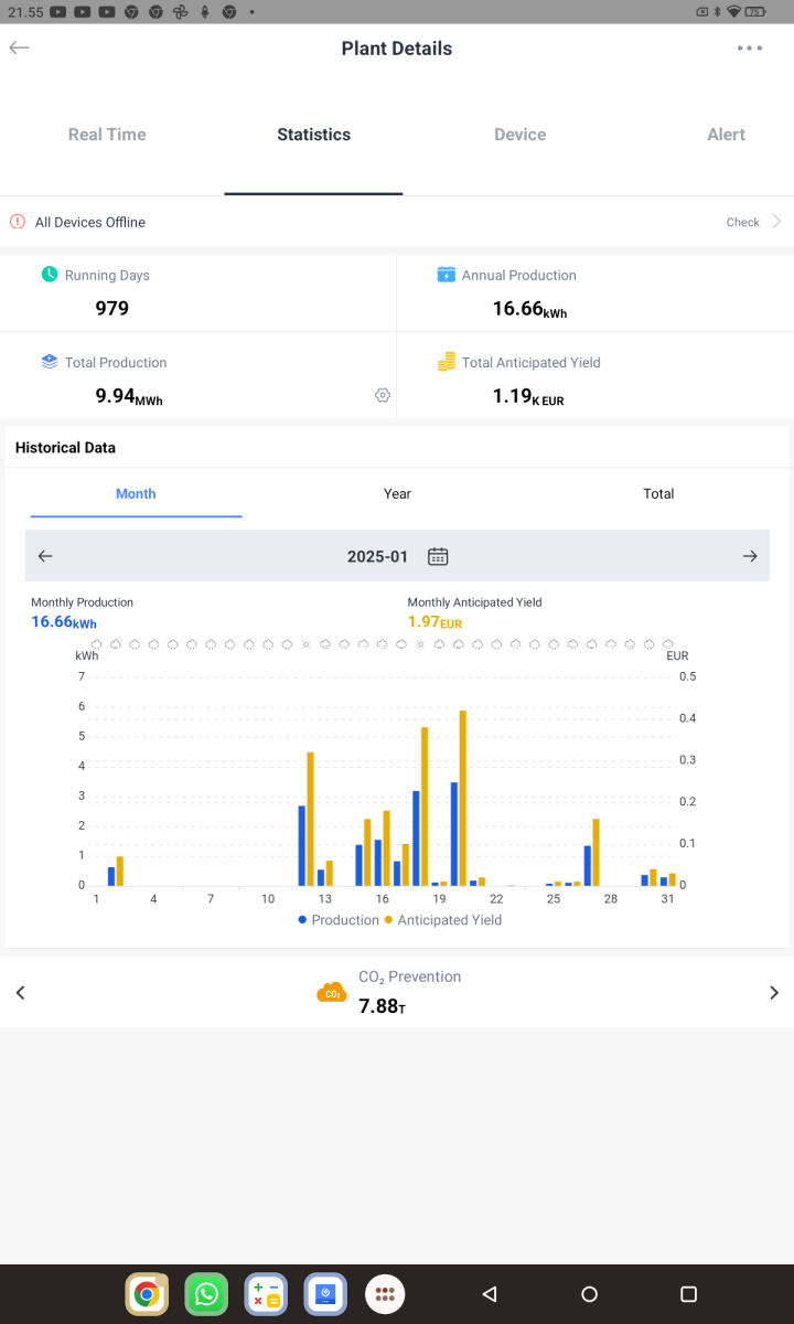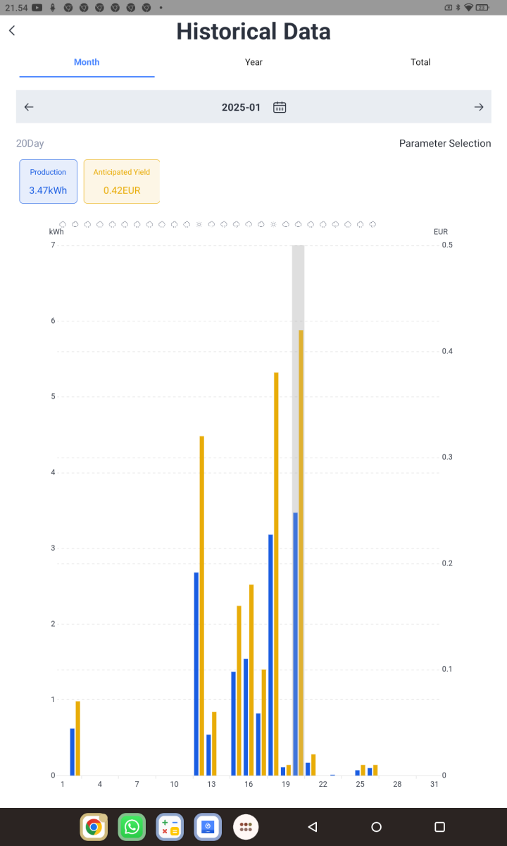 . No loppukuu näyttää harmaalta ja sateiselta, tuskin paljoa tuosta enää paranee tuotto.Pitäisi tehdä pyhiinvaellusmatka tonne skatan voimalalle.Täällä on jo myyty saman verran kuin teillä on tuotettu, eli 14,65 kWh mennyt myyntiinTänään meni tammikuun tuoton osalta jo 50 kWh rikki. 5,04 kWp: paneelista eli tuotto tammikuussa 10 kWh/kWp.