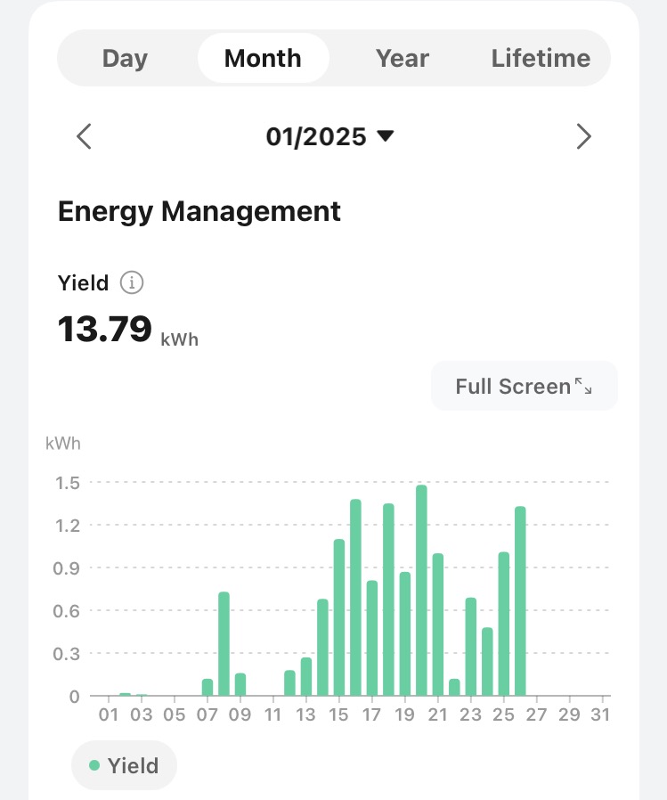 Ihan samanlaisia mustia lätkiä katolla (itävaltalaiset) ja invertteri seinässä (saksalainen) kuin niin monessa muussakin talossa. Mutta esteetöntä ja hyvällä kattokulmalla. Ja nyt on ollut hyvä keli täällä Turun seudulla, ei juuri lunta (enää ei lainkaan) ja pilvilauttakin välillä rakoilee. Vklp kävin mökkimaisemissa Uudellamaalla ja aivan harmaa taivas, samaan aikaan kotona katto tuotti reipas 8 kWh vaikka iltapäivä meni vähän pilviseksi. Saas nähdä millainen kevät tulee, viime vuonna oli niin pirun lonkeroista huhtikuussa ja tuotto oli lähes puolet vähemmän kuin keväällä -23.No eipä paljoa parantunut mut kaikki loppu meni omaan käyttöön. Oma uusi tammikuunNo loppukuu näyttää harmaalta ja sateiselta, tuskin paljoa tuosta enää paranee tuotto.