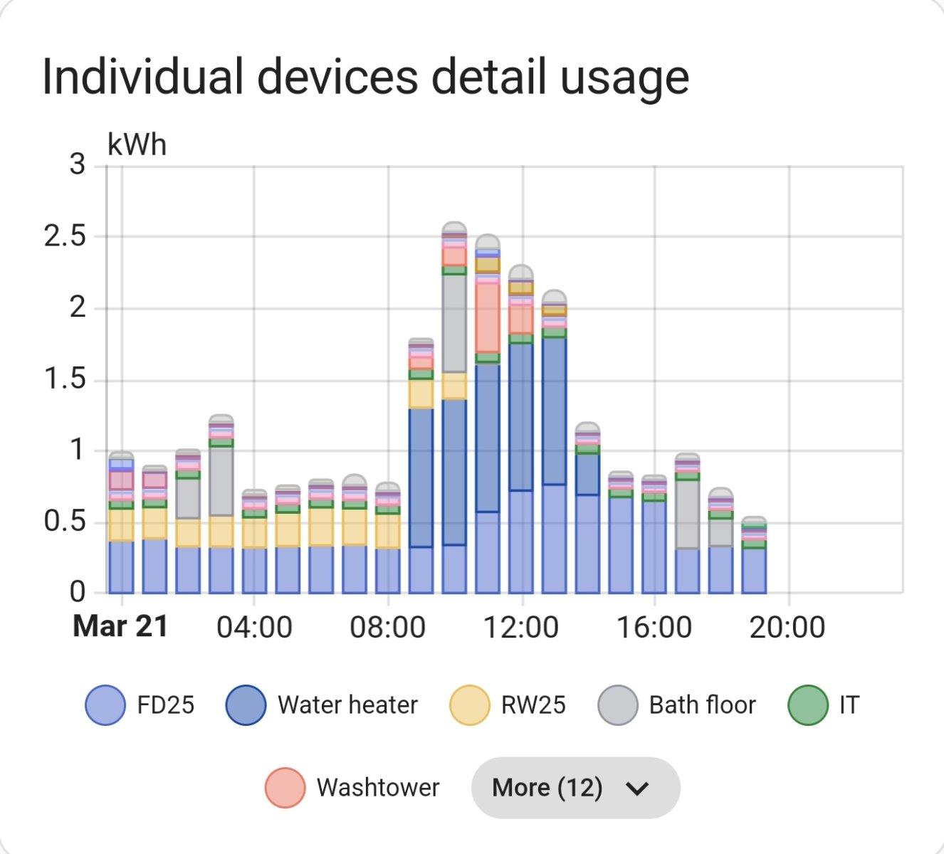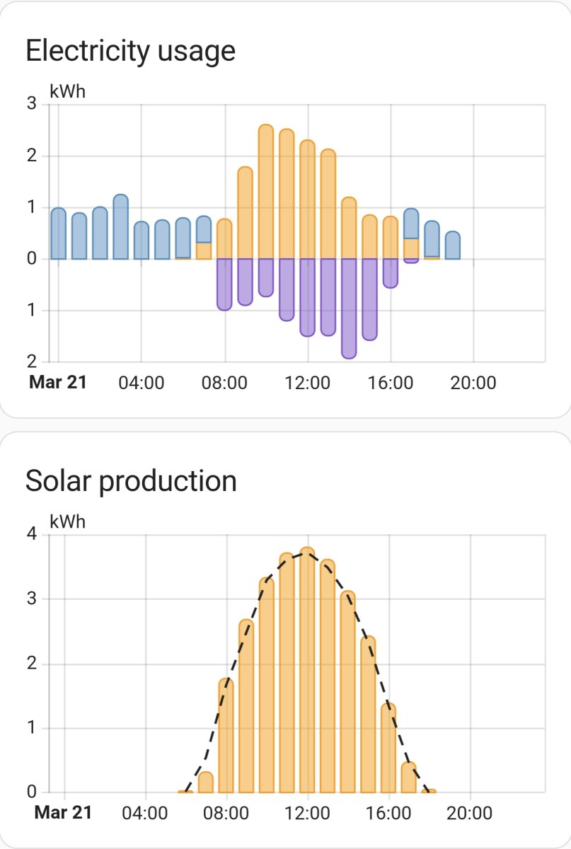 Tänään 29,3 kWh eli 5,8 kWh / kWp, aika täydellinen päivä. Saas nähdä onnistuiko tuon tuhlaaminen, huominen näyttää. Sinänsä hauska, et eilen oikein yritin myydä ja onnistuin mutta tänään olisi pitänyt tuhlata ja vielä enemmän :p
