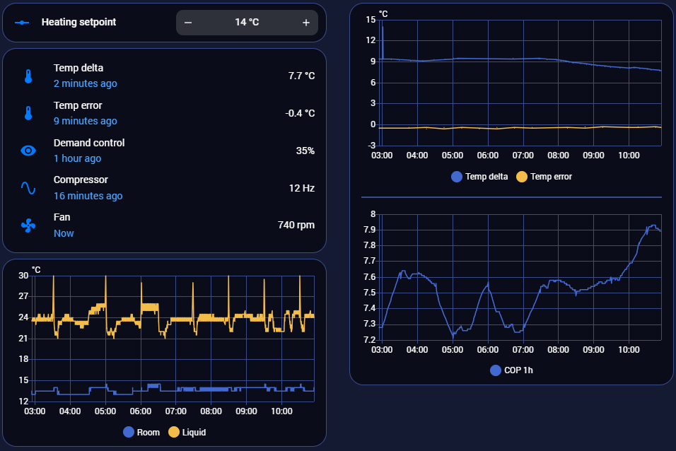 • input_number.heating_setpoint on tavoitelämpötila (eri kuin pumpun oma tavoitelämpötila)