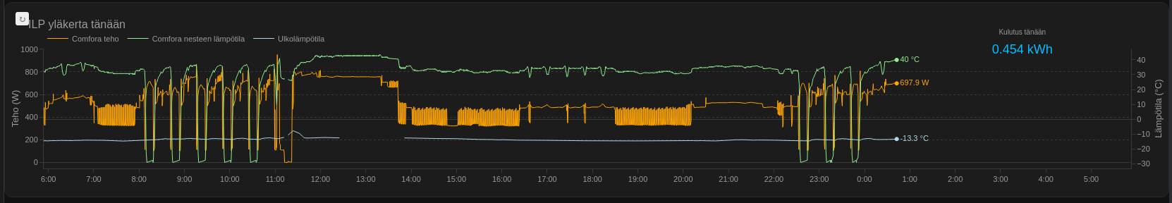 hönkii nyt ihan olemattomasti. saisi tuota takan lämpöä kiertoon kun puhaltaisi kunnolla. ilmankierrätyksellä sen toki saisi mutta nyt on niin kovat kelit, ettei viiti tuota käyttää. jäätää korkeintaan ulkoyksikön jne......