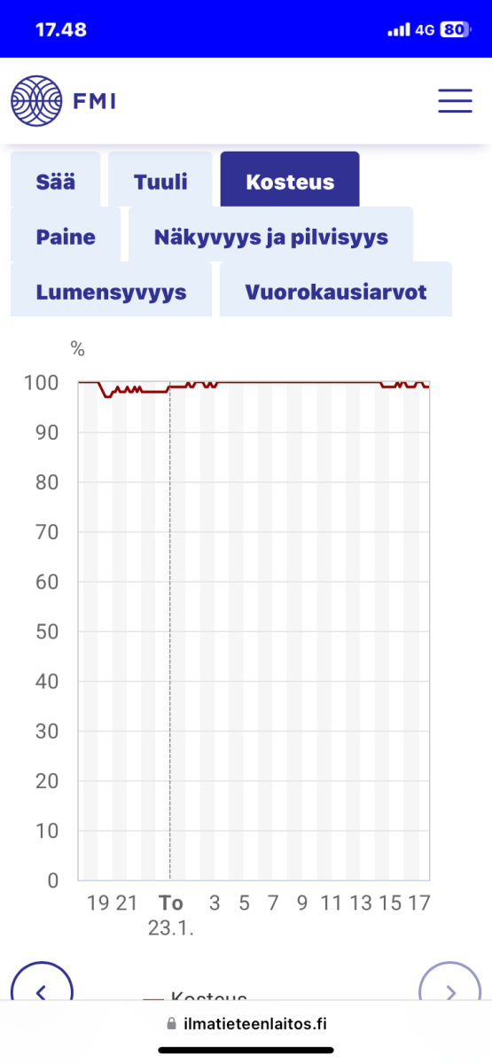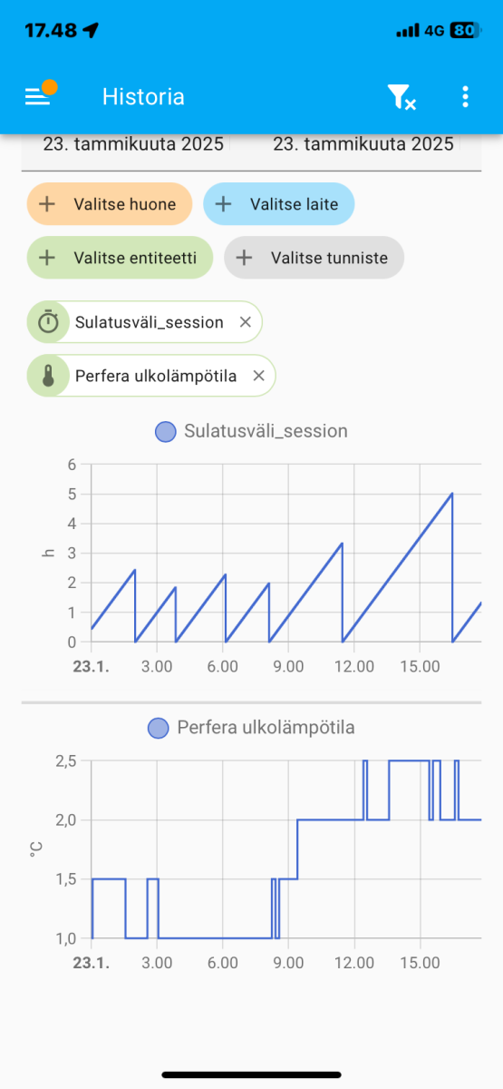 Eilen oma Perfera 40 sulatti varmuudella yhden kerran, klo 10:00.