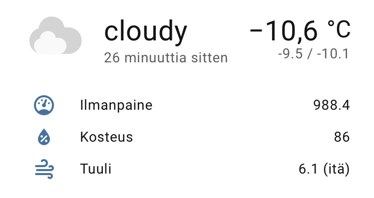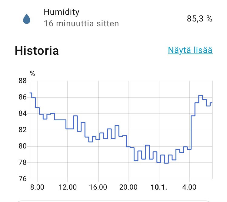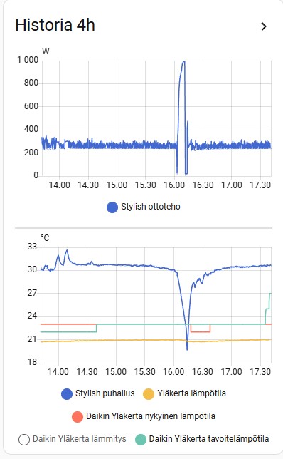 Taas sama homma, kaikki vanhat kulutustiedot hävisi yhtäkkiä. Mikähän ihme tämän voi aiheuttaa?Pari vuotta vanha Daikin Stylish ja nyt Onectasta hävisi kaikki kulutustiedot. Päivällä näkyi enää tämän päivän kulutus mutta nyt sekin on hävinnyt. Kokeilin poistaa onectan ja asentaa uudelleen mutta ei vaikutusta. Muistelin että jollain muullakin olisi käynyt näin, saakohan noita tietoja enää mistään takaisin vai onko ne nyt menetetty. Mitään ohjelmistopäivityksiä ei ole tullut... ainakaan tietääkseni.