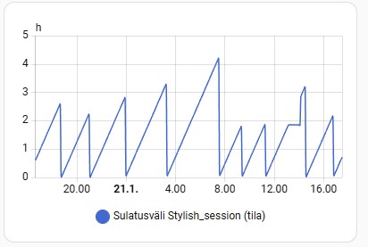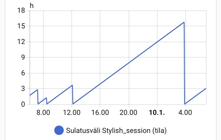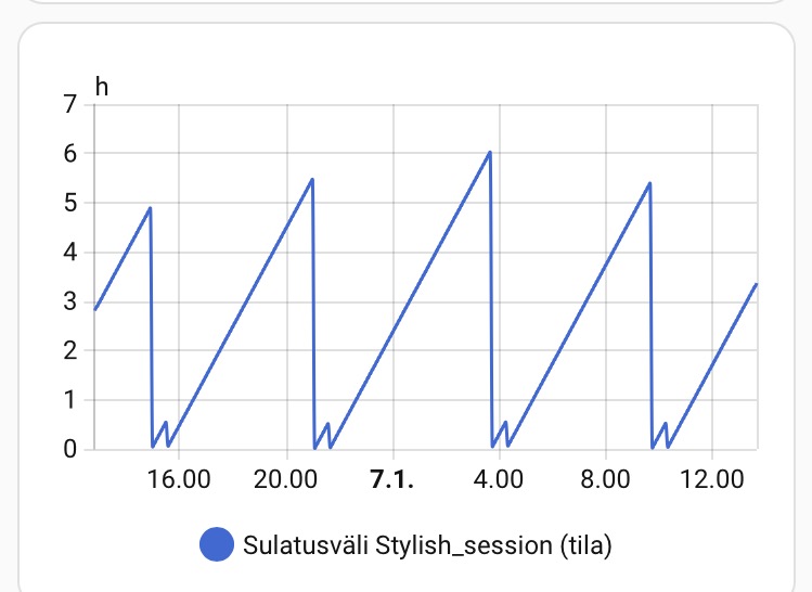 Ihan hullun pitkä sulatusväli on kyllä, mutta aika kevyellä kuormalla, jos puhaltaa vain noin 30 asteista ilmaa?EI paha sulatusväli Stylishillä.. vaivaiset 29h