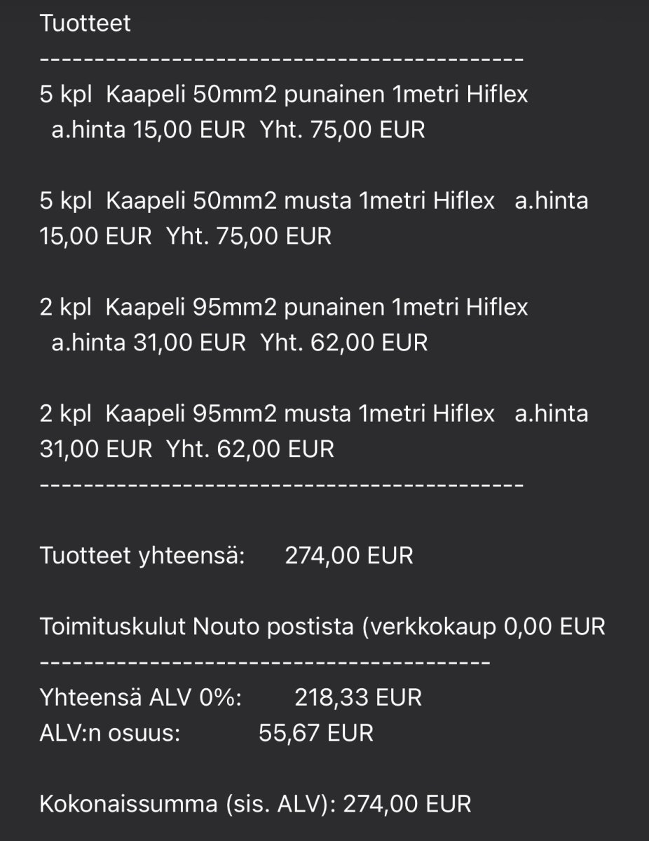 Tämä sama valikoitu sokeus asioihin vaivaa toisaalla, jossa unohdetaan mainita vähän sitä sun tätä kunhan se omaan agendaan sopii. Mainostetaan, että Victron ei niin kallis ole, mutta hups jäi mainitsematta, että aurinkopaneeleita varten tarvitaan 700-1200€ edestä MPPT yksiköitä. Sen jälkee alkaa selittely, että oikeastaan ei edes kannata tehdä 3-vaihe järjestelmää niin voi säästää kahdesta invertteristä tai ettei itselle ole tulossa paneeleita, eikä itse tarvitse Cerboa jne jne.