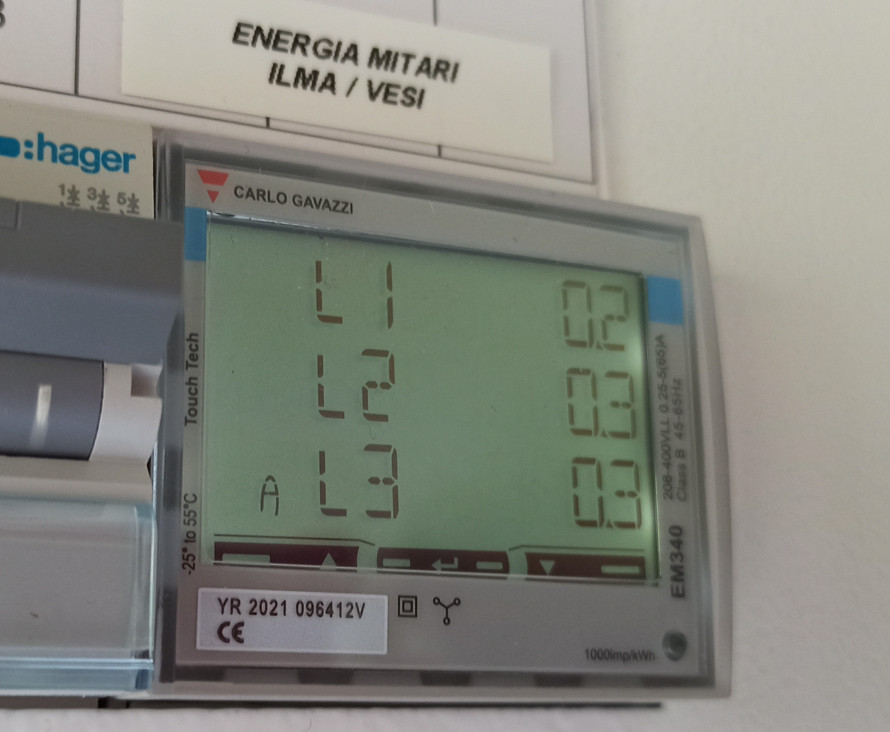 Nibe F2120-12 25W tyhjäkäynnillä. Ulkoyksikön kwh-mittari vilkuttaa katkon aikana 0,02/0,03 kw tehoja, kun pihalämmöt on 10C.