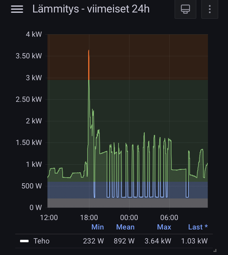 Ohessa kulutuskäyrää viimeiset 24h, josta näkyy pohjakulutus.