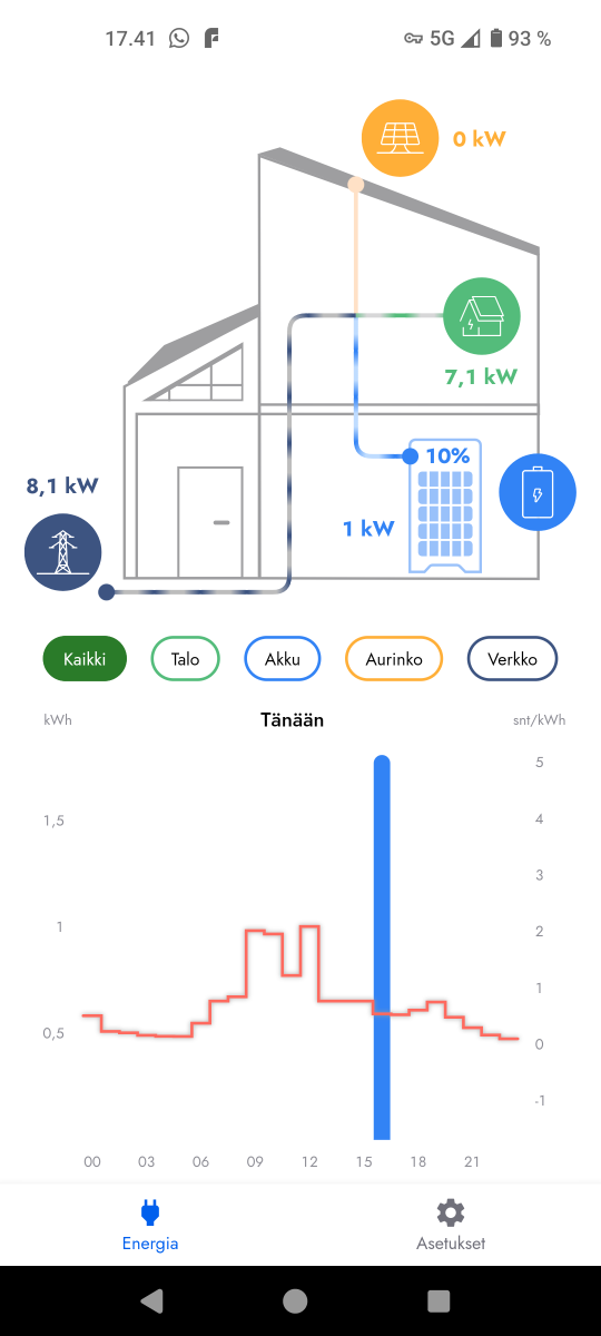 Mietityttää omien automaatioiden ja Elisan systeemin yhteiselon sovittaminen. Samoin 10 vs. 15 kWh järkevyys, ainakin Elisan laskelmalla jälkimmäisen rajahyöty on lähes nolla mutta mikä lienee totuus.