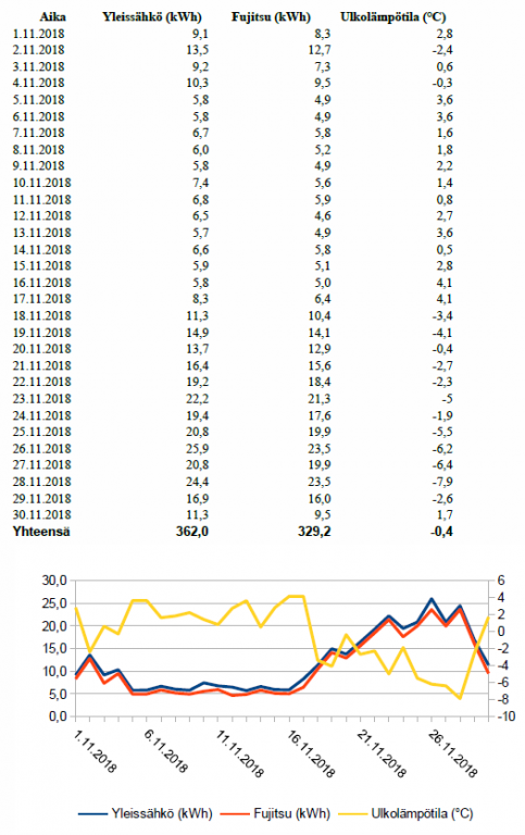 - Fujitsu LZCAN09 ilmalämpöpumpun sähkönkulutus 976,2 kWh.