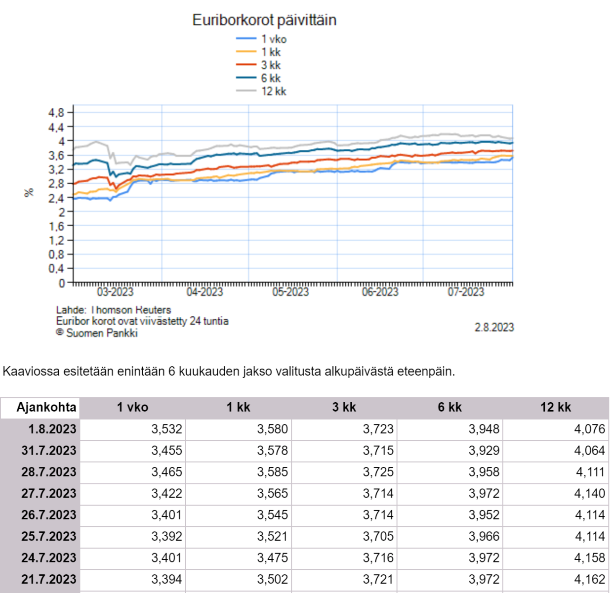 Taas pätkähti uudet luvut taululle korkojen osalta.