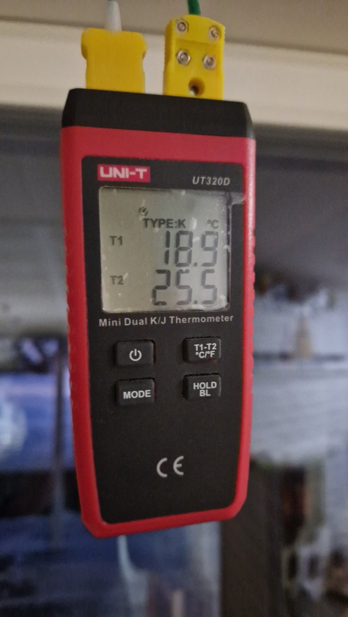 Tulo 26C (takka+sauna lämmitetty),(anturi 5cm imun yläpuolella, 315cm lattiasta. Kattoon jää vielä 70-160cm vinokatto.)