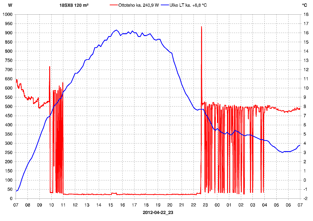 Seinänaapurilla on ilmalämpöpumppu. Samassa paikassa sisäyksikkö, mutta eri merkkinen. Siellä kulutus 16000kwh. Meidän 20000kwh siis ennen pumppua.