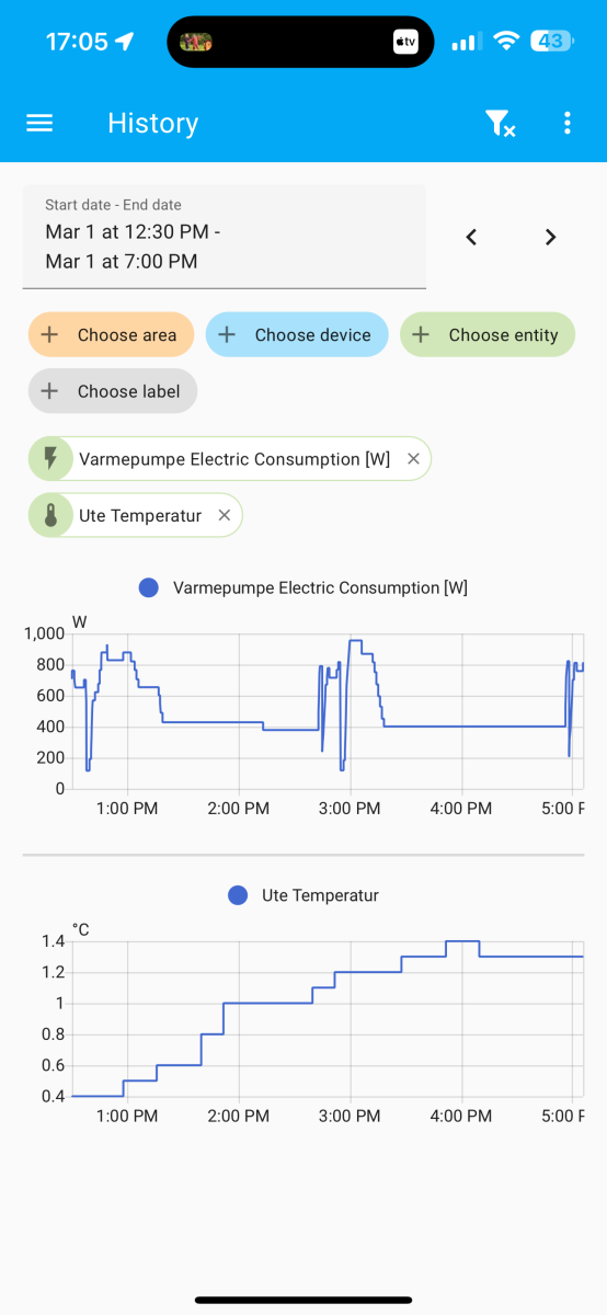 I’m still working on perfecting the airflow, as I believe this also has a big impact on how the air moves in the house and needs to be fine tuned as I did with the mitsu. But it’s the panas temperature sensor that is the main culprit here, without my automation it makes it go to hot so the pump draws maximum power and stops for 10 minutes because it thinks it’s too hot, which just makes the house colder as it can’t seem to figure out that it needs to settle at 800-1000W to give enough heat.