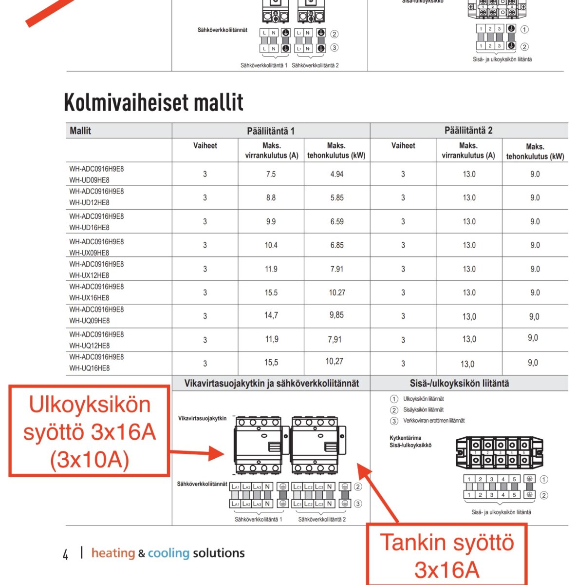 Onko WH-ADC0916H9E8 sisäyksikössä 2kpl 3-vaihe vikavirtasuojia sisällä?
