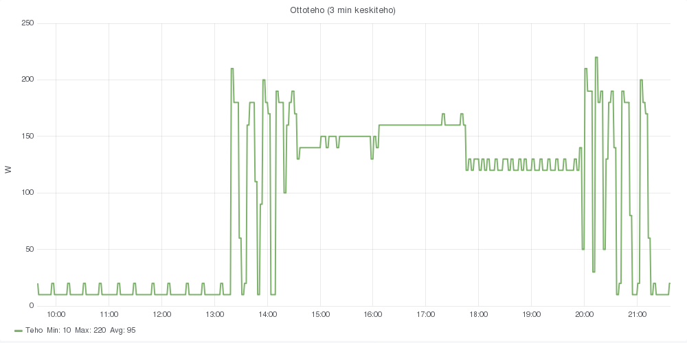 Noin 170-180 W kieppeille tasoittui. Nyt meni katkolle kun nostin pyynnin 25 C.
