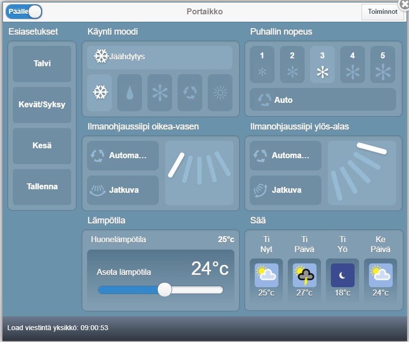 Ulkona 27-29 C. Pyynti 24 AUTO-puhallus (minimillä puhaltelee)