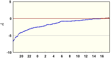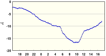 Ulkolämpötila -2 C - -17 C.