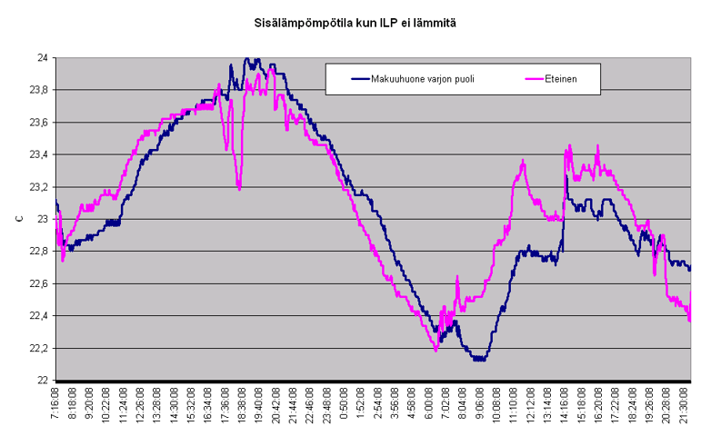 Hiukan tuntuisi tuo sisälämpötila nyt jo jäähtyvän => ILP lähtee ajastimella taas puolilta öin lämmittämään