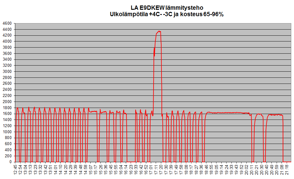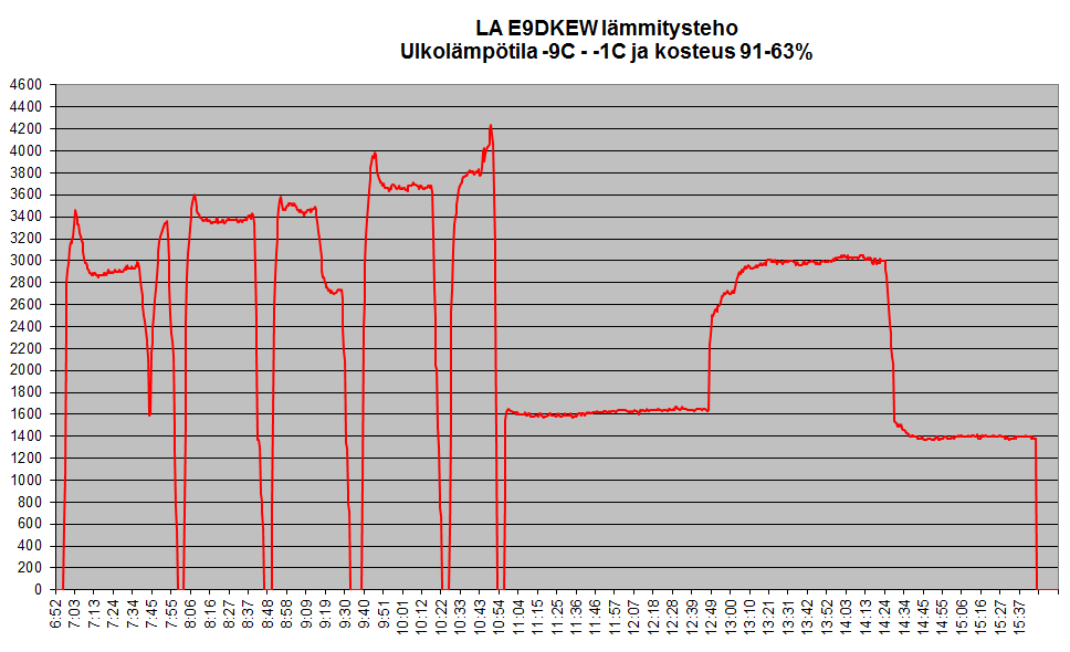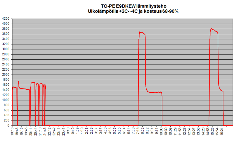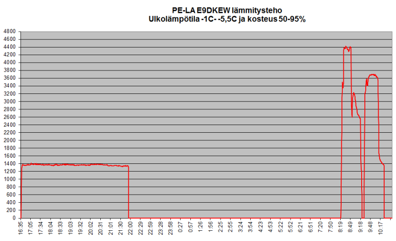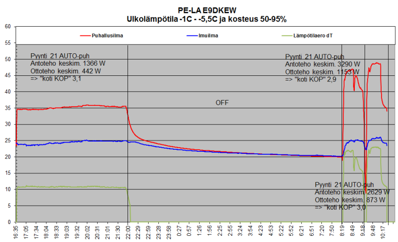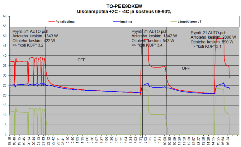 Hemmo-tetissä +3C irtosi Powerfull-modessa laitteesta irtosi noin 4,2 kW ottotehon ollessa noin 1140 W.