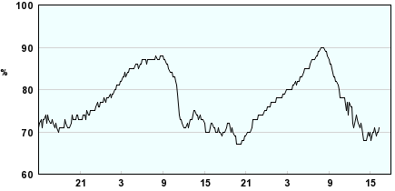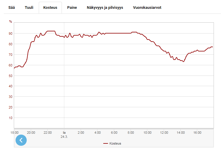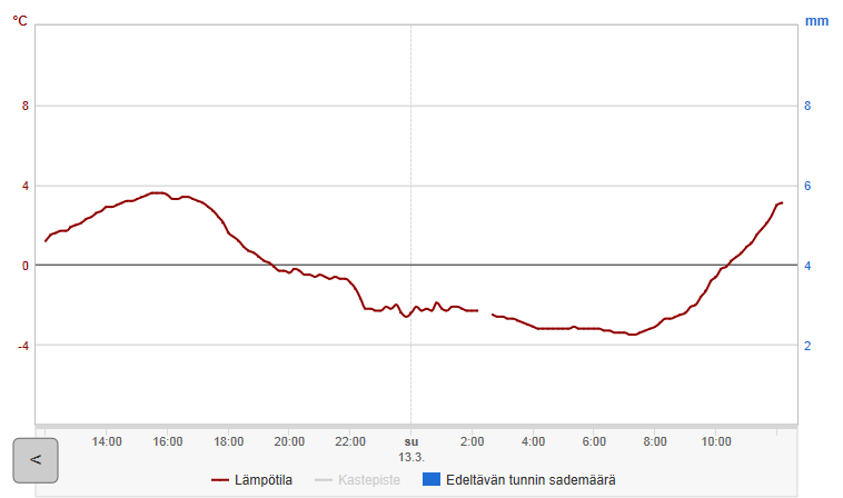 10:59 alkanut lämmitysjakso jatkuu edellen. Ilmankosteus on pysynyt alle 80 %:ssa => Pana ei turhia (kuivan kennon) sulatuspysähdyksiä tee. ;D
