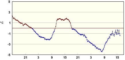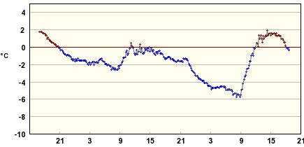 dT parhaimmillaan noin 22 C. 9:20 yksi sulatus.