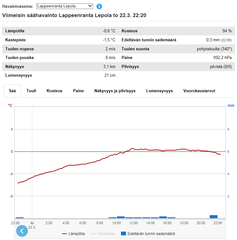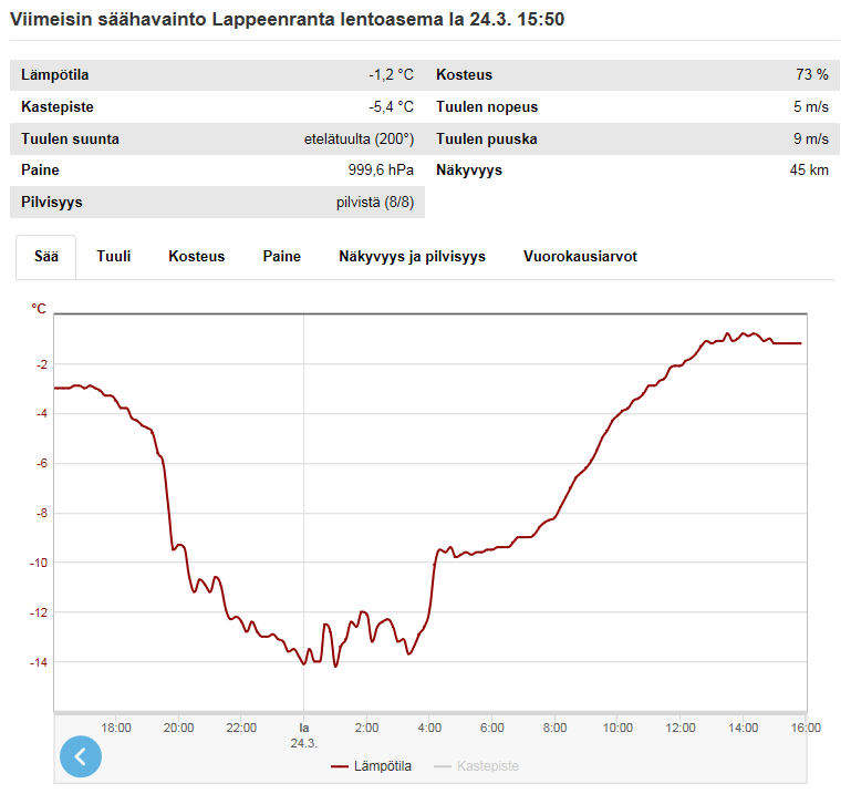Ulkolämpötila -1C - 5,5C ja kosteus 50-95%.