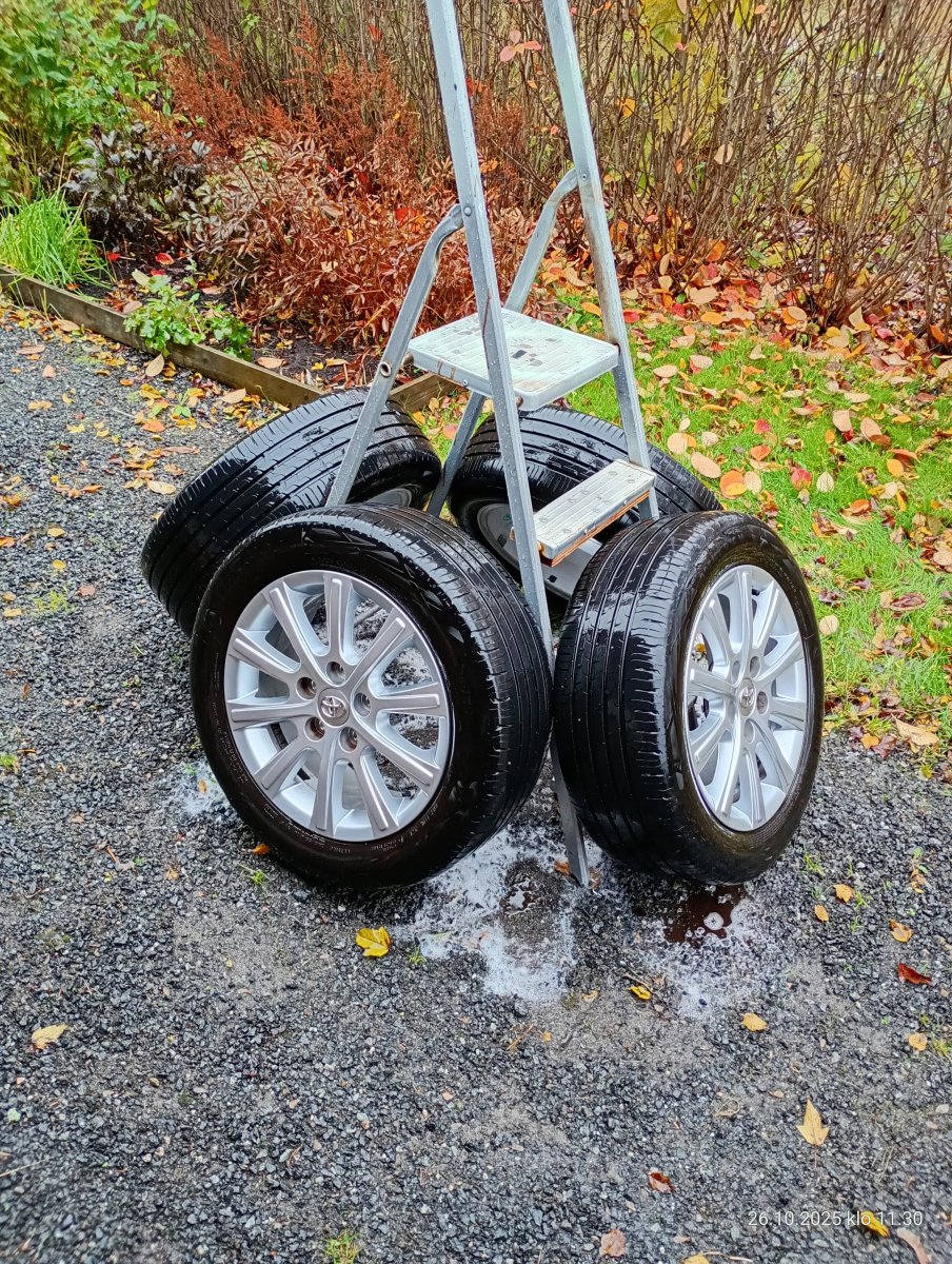 Monenlaista mustaa kiekkoa on ollut alla, kesä-, nasta- ja kitkarengasta, kinuskia, Barumia, Bridgestonea ja Nokialaistakin, ei edes muista. Kai noissa joku ero on, mutta kun ei kiinnosta, kiertääkö niillä ympyrän 32 vai 33 sekunnissa. Vaikeita kelejä täällä Turun kupeessa on harvassa, yleensä vaan kahdenlaista: kuivaa tai märkää. Maalla ja pohjoisempana on erilaista.