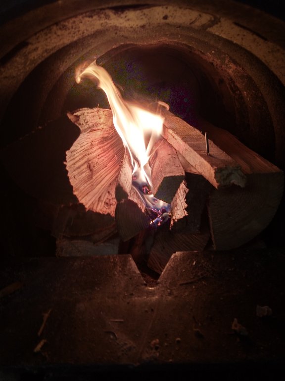 Eilen poltin vuoden ensimmäisen pesällisen, luukun lämpö 23 sytyttäessä. Liekkien juuri loputtua, hiillosvaiheen alkaessa, 94; pellit sulkiessa aika tarkkaan 2 tuntia sytytyksestä 67. Nyt 21 tuntia sytytyksestä lämpö 43.
