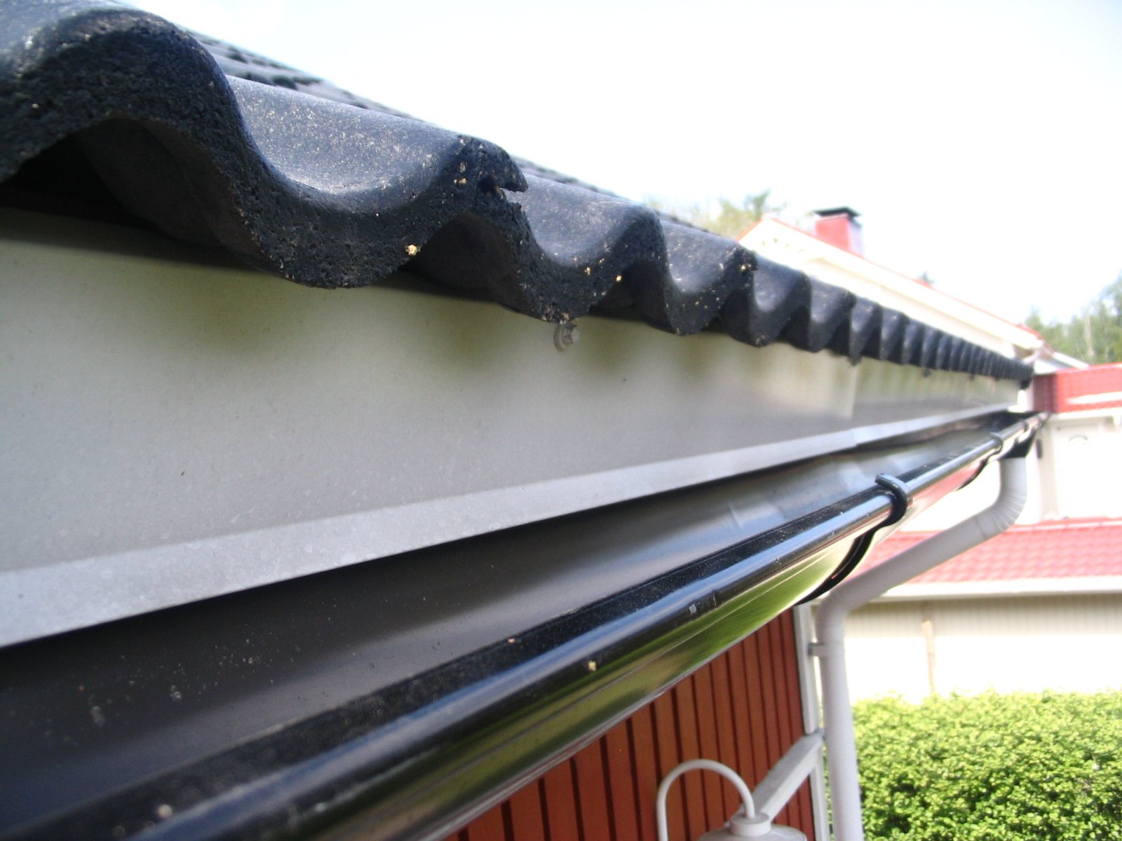 Hmmm, no täytyy sateella taas tuijotella räystään alle että tulisiko vettä. Joku sanoi että siihen jää likaa niin näkisi siitäkin (meillä valkoiset laudat)