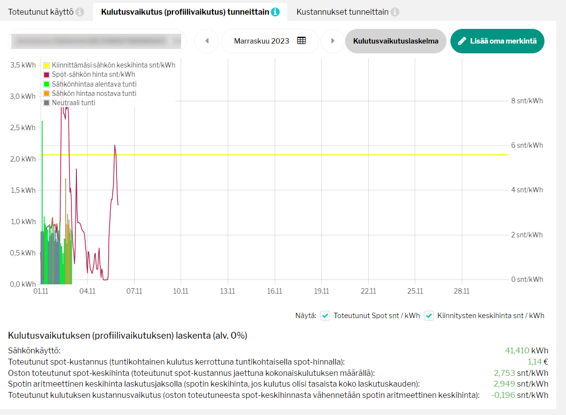 Mielenkiintoista. Priimasta voi seurata omaa sähkökulutusta ja näyttää myös vihreällä tunnit jolloin kulutusvaikutus pienentää ja oranssilla tunnit milloin kulutusvaikutus suurentaa. 2vrk jälkeen kulutusvaikutus -0,074.