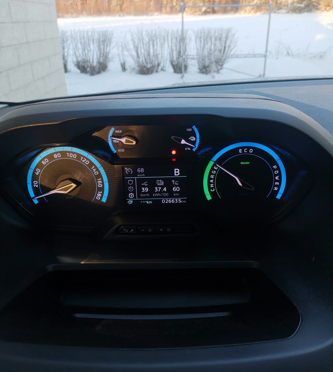 Uusi ennätys, Peugeot e Partnerilla 60km akullisella (50kWh), ajelut pätkäajoa kovalla pakkasella ja kylmällä autolla lähdöt ilman etälämmityksiä.