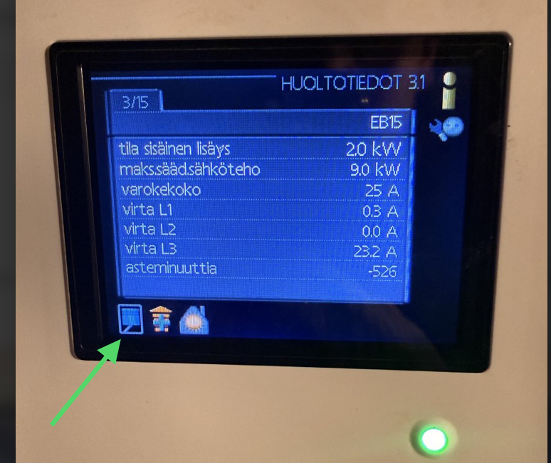 Nyt menee käytännössä 2kW/4kW tehoilla koko päivän, aiemmin hyppi melkein suoraan 9kW teholle kunnes menovesi kuumeni liikaa laskennalliseen nähden ja asteminuutit nollaantui.