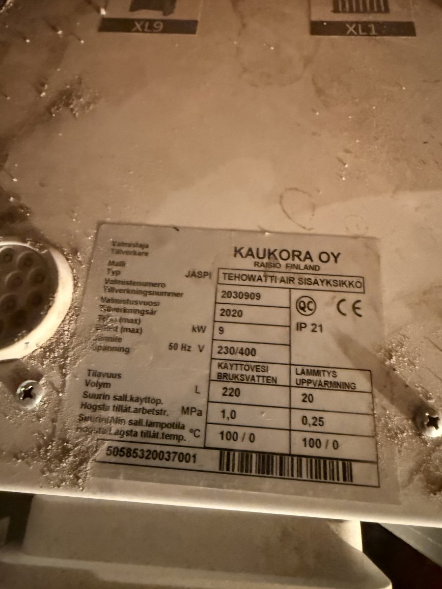 Tuossa viestin #52 kuvassa Tehowatti Air 9 kW sisäyksikkön tiedoissa= Tarkoittaa että siinä 3x 3kW sähkövastus . Ulkoyksiköö varmaan sitten 8 tai 12 KW Sen tyyppi kilpi muistaakseni koneen sisällä katsot sitten kun ilmat lämpenee