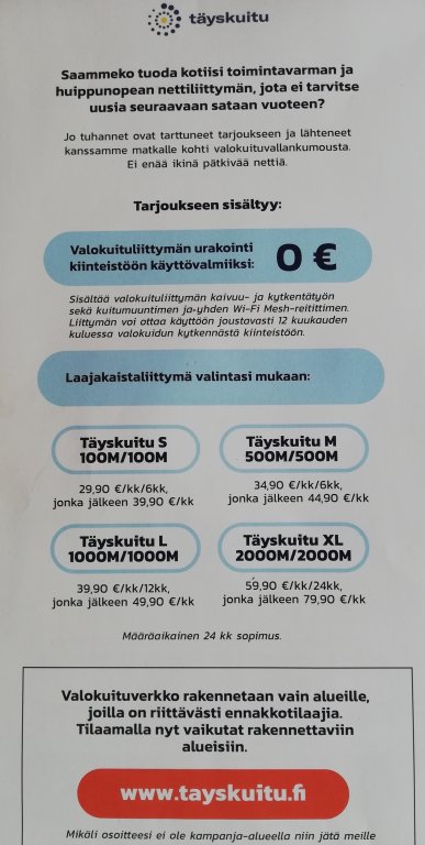 Kyllä se valittikin. Siellä vain todettiin että suunnitelupuolelta oli todettu että johan on kummallisesti suunnattu solut. "Jos korvaukseksi lasketaan hiukan kuukausimaksua?", ei paljon lohduttanut kun asunnossa ei ollut edes sellaista kuuluvuutta että puhelut eivät olisi pätkineet riippuen missä huoneessa sattui olemaan. Vika oli niin selvä että tuo riitti määräaikaisten liittymien irtisanomiseen. Missään vaiheessa kukaan ei ollut kertonut että tullaanko asialle mahdollisesti joskus tekemään jotain.@fraatti Seison korjattuna, ja ihan mielelläni. Minäkin valittelin kerran surkeaa varaosapalvelua harrastuspohjalta pyörivällä merkkikohtaisella autofoorumilla, ja pian sain haukkumani merkkiliikkeen edustajalta YV:tä ja kaipaamani osan "tiskin alta". Pointtina oli kuitenkin, pääsääntöisesti, että ehkä kaverisikin olisi kannattanut valittaa suoraan operaattorille eikä kaikessa hiljaisuudessa äänestää jaloillaan.