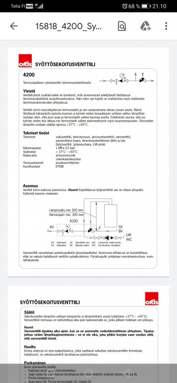 Täs näkee kun käyttöveden termostaattiseen säätöventtiiliin on tehty lämpökatko mikä jää usein tekemättä, vaikka asennusohjeessa se selvästi mainitaan.