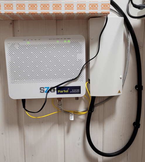 Paikallinen teleyhtiö sai vihdoin ja viimein, reilun kahden vuoden jälkeen kuidun asennettua valmiiksi. Nopeus ja pingi ovat kyllä hyviä mutta asennuksen ulkonäkö ei kyllä ainakaan omaa silmää miellytä. Varsinkin kaapelikiinnikeiden sijainti ja kaapelin taivutus ottaa linssiin. Täytynee miettiä miten tuon saisi hiukan siistittyä omin avuin.