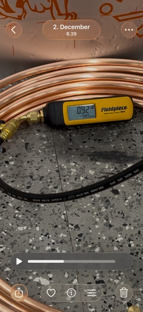 Itse otan yleensä aikaa kauanko kestää saavuttaa alle 2,7 mbar paine ilppiasennuksessa. Jos se on minuutin luokkaa kaikki on yleensä kunnossa.Tämä oli testi jossa käytin samoja aikarajoja eli 2 min tyhjiöintiä - 1 min pitävyyden testausta. Näin pystyi vertaamaan tuloksia mitä todella tapahtui. Jos tyhjiön saa aikaan 1 mbar tasolle ja se pysähtyy tiiveys testissä 1,2 mbar tasolle, niin ei se siitä muutu kun ei ollut putkessa jäljellä enää mitään (kosteutta) mikä olisi sitä muuttanut. Tämä empiirinen testaus tulee jatkumaan, jotta päästään eroon ajatuksesta että tyhjiöintiin käytetty aika on olennaista, mutta ei tyhjiömittarin käyttö ja aikaan perustuva tyhjiön pysyvyys.