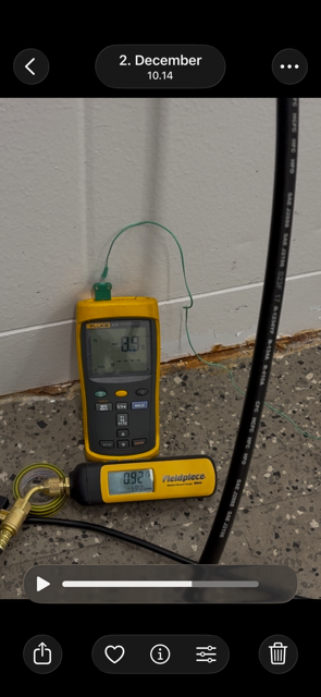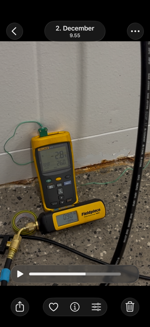 Tein tuossa joulukuun alussa testin tyhjiöinnistä eri lämpötiloissa. Käytössä vähän reilu 10m pitkä 1/2" kupariputki kierukka, joka vastaa ILPin sisäyksikön + 6m putkivedon volyymia. Imin putkeen kosteaa ulkoilmaa kun RH oli 91%. Sitten suoritin tyhjiöinnin kolmessa eri lämpötilassa +22/0/-10C. Jokaisella kerralla imin tyhjiötä kaksi minuuttia jonka jälkeen suoritin minuutin tiiveys testin. Kaikissa lämpötiloissa tyhjiön sai vedettyä alle 1mbar kahdessa minuutissa ja tyhjiön pitävyys toteutui kaikissa testeissä samalla 0,4mbar erolla minuutin jälkeen.Jos järjestelmässä on fyysistä vettä ( jäätä ) niin pakkasella tyhjiöinti vie pitkään tai ei onnistu ollenkaan koska veden haihtuminen ( jään sublimoituminen ) kuluttaa lämpöenergiaa. 4-tie venttiili saattaa jään takia olla jumissa jolloin sen taakse saattaa jäädä osa, joka ei tyhjiöidy ollenkaan. Ulkopuolinen lämmitys auttaa vähän mutta saadaanko koko järjestelmä lämmitettyä?